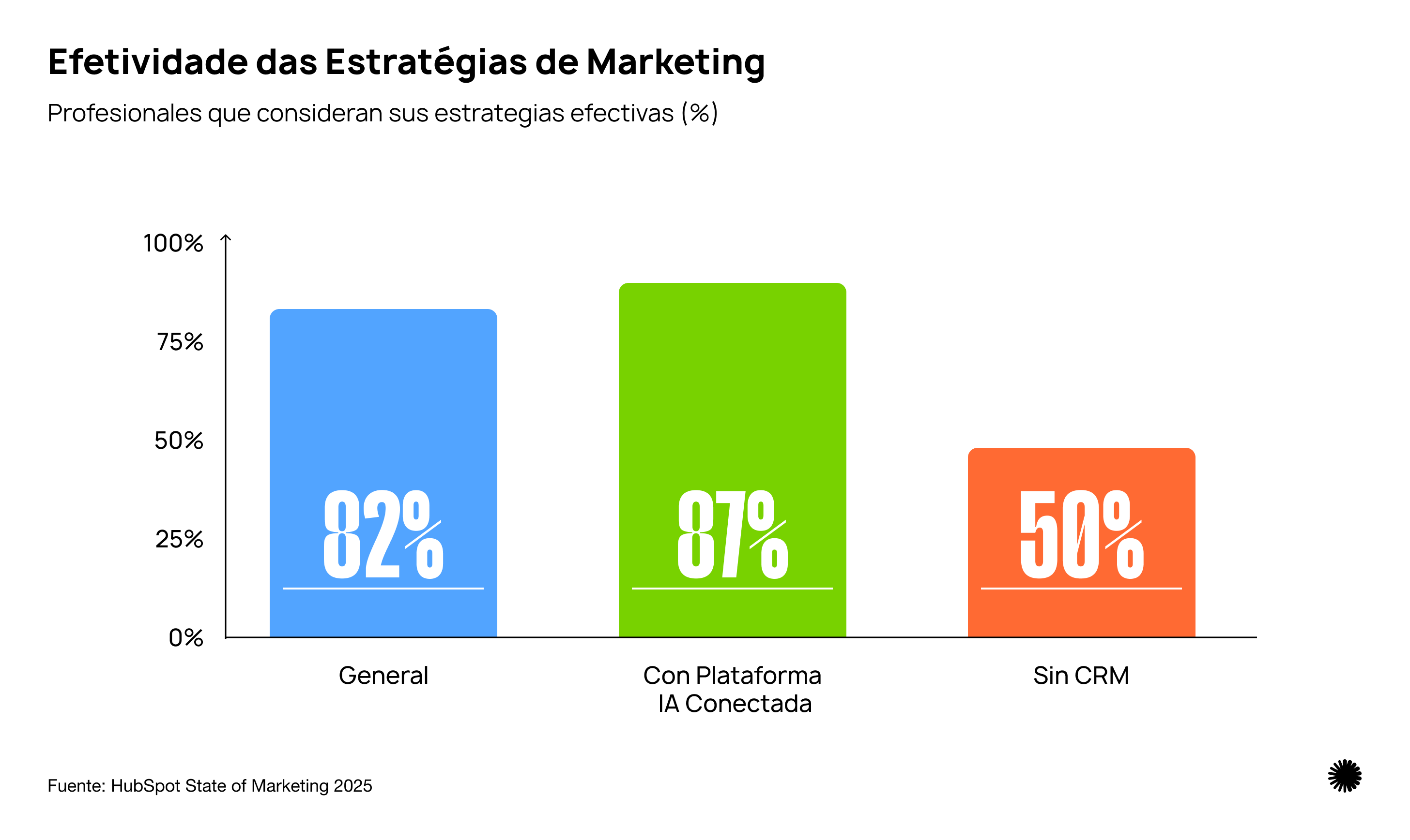 El 87% de los profesionales usando plataformas conectadas de IA reportan estrategias efectivas porque tienen tiempo para ser estratégicos. No están atrapados en ciclos de producción ni ahogándose en trabajo de coordinación. Están haciendo marketing de verdad.