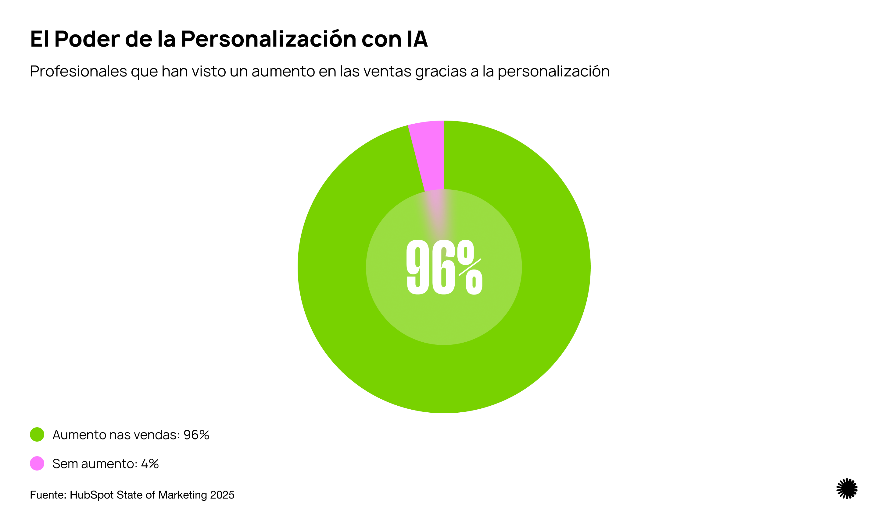 El 96% de los profesionales observan aumento en las ventas con experiencias personalizadas. Pero aquí está el insight: la personalización con IA hace que el marketing sea MÁS personal, no menos.